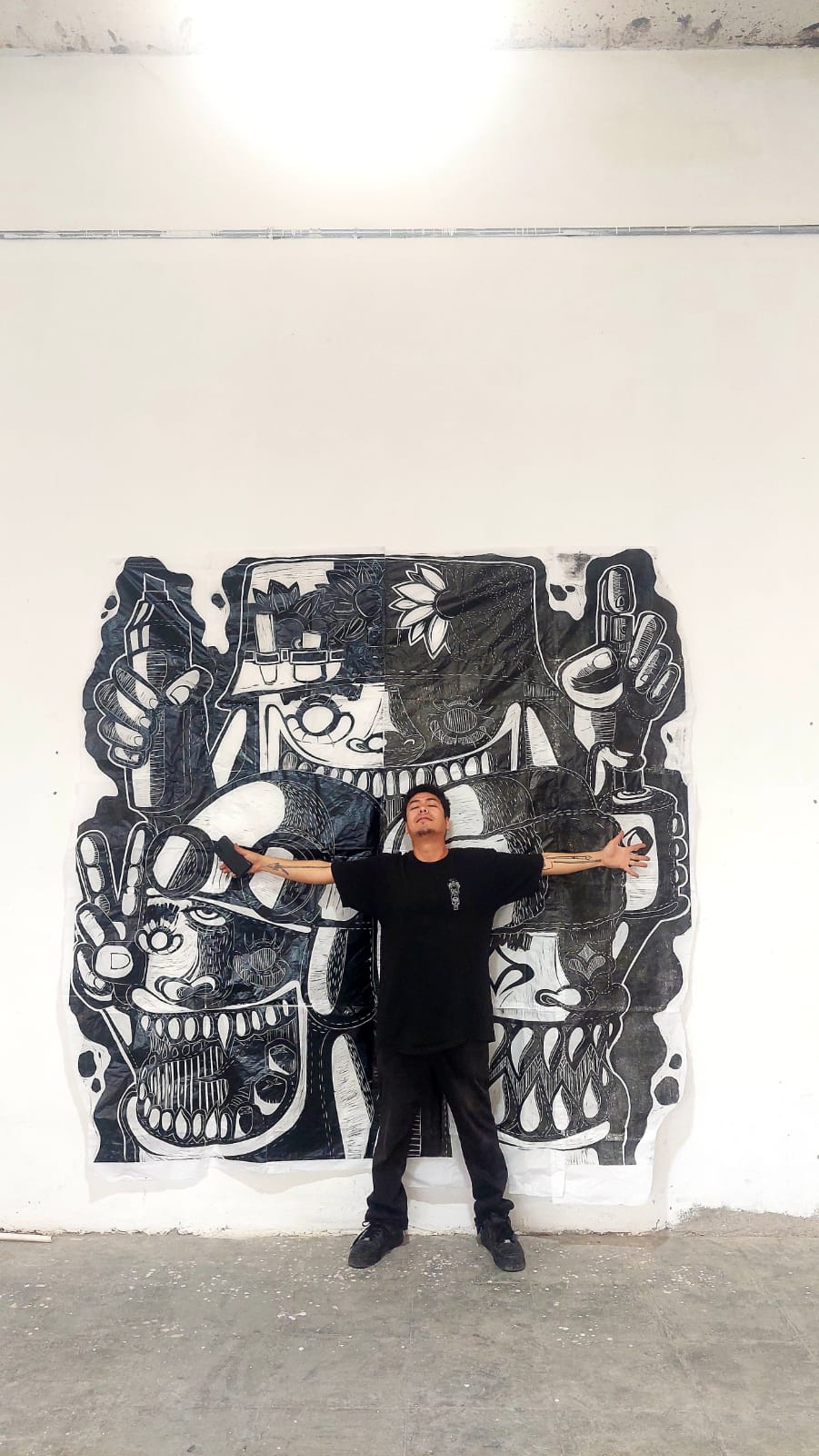 Muelón es un personaje multidimensional que nace a mis 16 años a partir de un apodo que me ponen en el barrio. Este personaje ha visitado distintas partes de la república mexicana como Guadalajara, Oaxaca, Zacatecas, Coahuila y Durango. Actualmente sigo aprendiendo y experimentando nuevas formas y técnicas del grabado para poder llegar a más lugares y continuar con «Los viajes de Muelón«